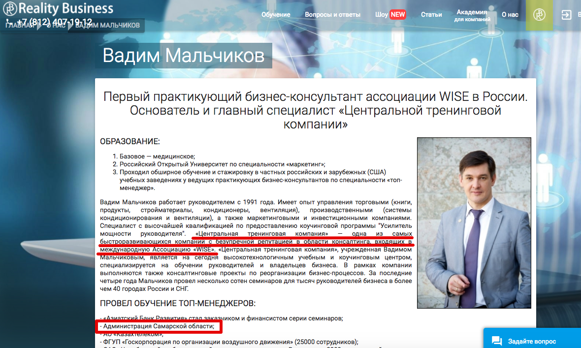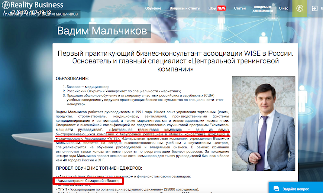 Интересной ссылкой поделился другой анти-культист из Поволжья. Он заметил, что на странице "бизнес консультанта ассоциации WISE" Вадима Мальчикова указана интересная информация. это саентологическая ассоциация, через которую она окучивает малый и средний бизнес.